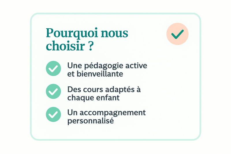 Nous croyons qu’un enfant apprend mieux lorsqu’il est encouragé, valorisé et accompagné à son rythme.